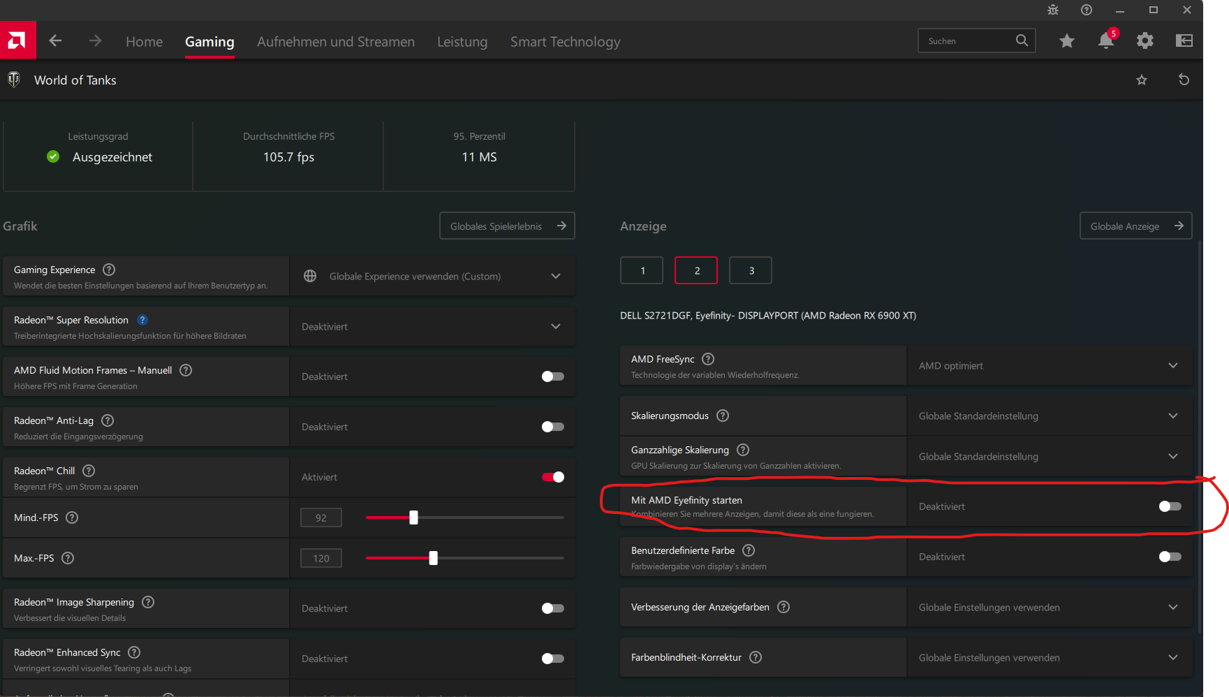 Wollte in WOT gern nur den mittleren Monitor nutzen, allerdings bekomme ich das nur über Spiel interne Einstellungen hin (rahmenloses Fenster).