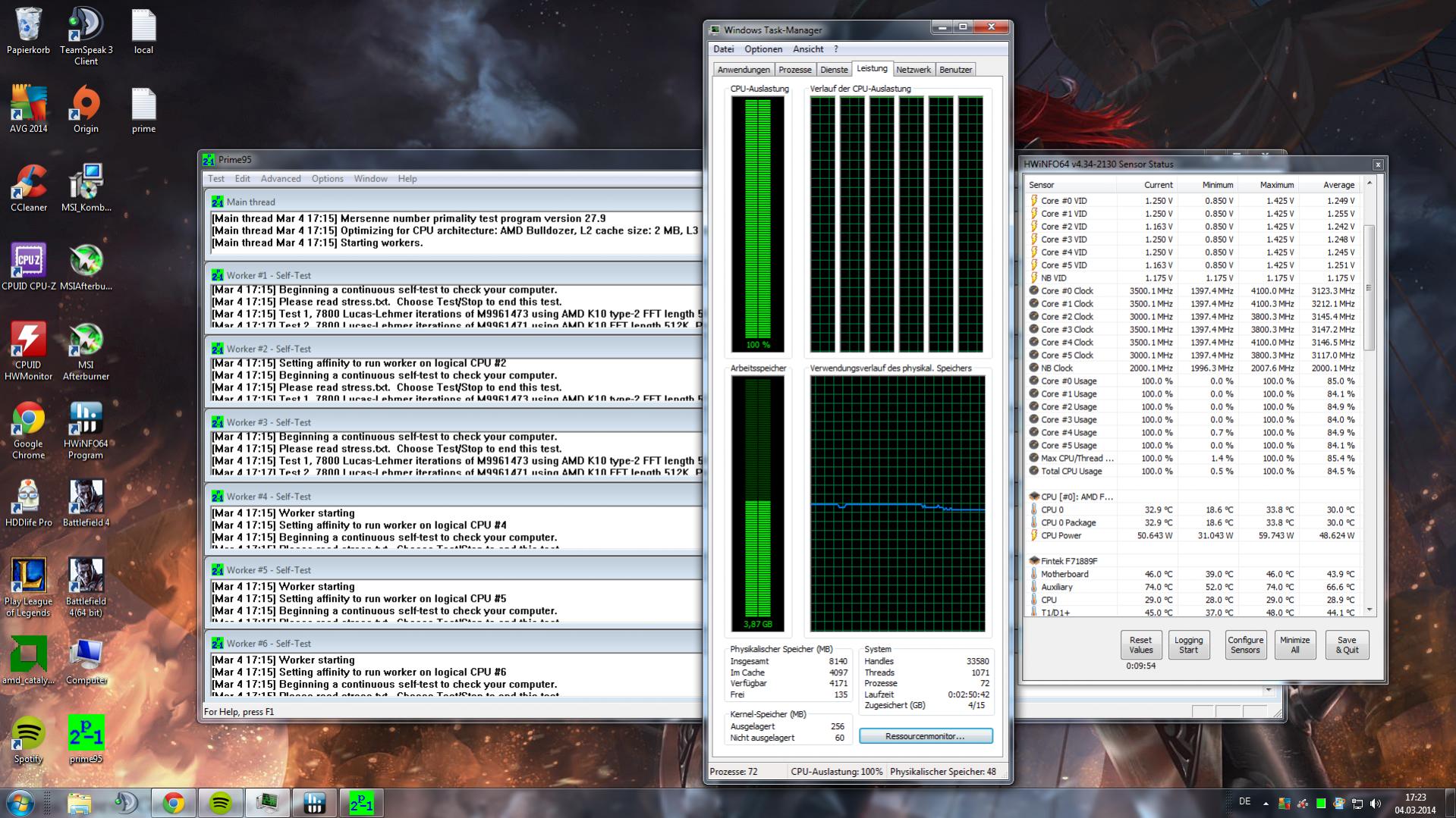 Prime laufen lassen und die CPU-Frequenz beachten.