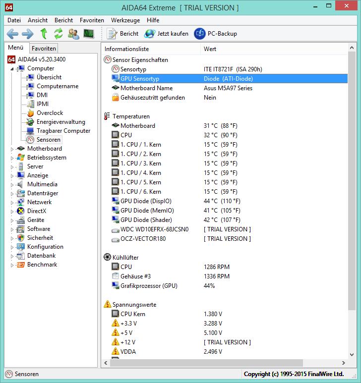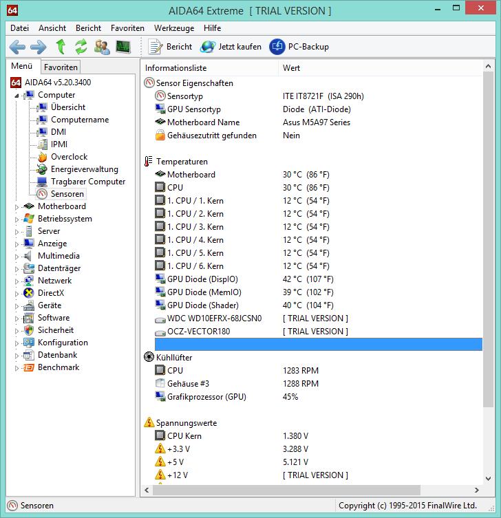 und die Temperaturen sind bei CPU 30 Grad und die Kerne bei 13 Grad laut AIDA64.