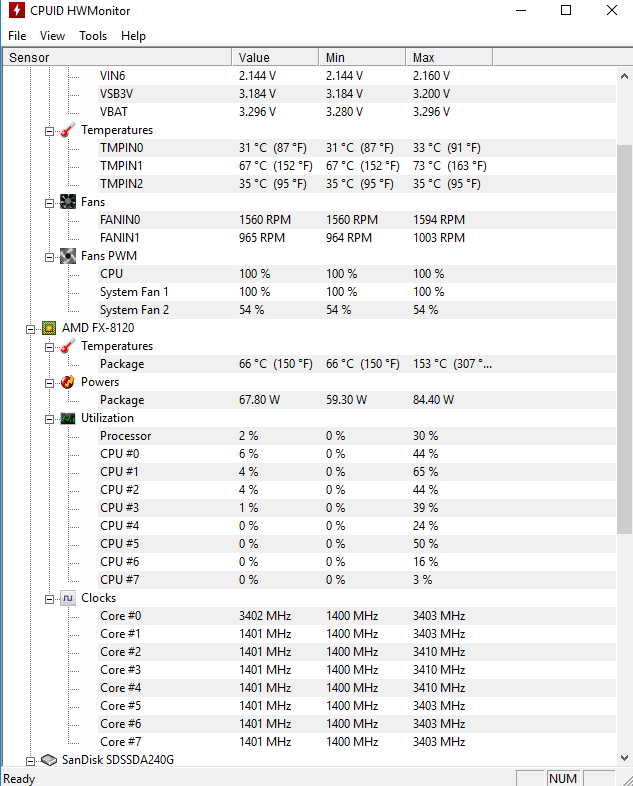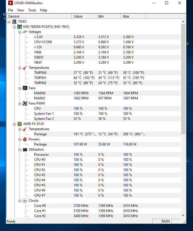 Unter last mit Prime95 zeit es teils auch mal Werte von 100 bis 255 Grad an , was ich nie im leben glauben kann