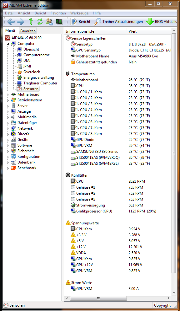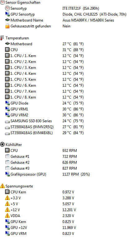Nun des ist die 24/7 einstellungen der CPU, sind so ca. im Idle bei 31 Grad. Kerne gebe ich keinen Wert an die haben ja eh eigene errechnete Werte so meiner Meinung nach. :-) Beim Zocken komme ich auf ca. 36 - 48 Grad. ( Umgebung liegt so bei 20 Grad aktuell :-)