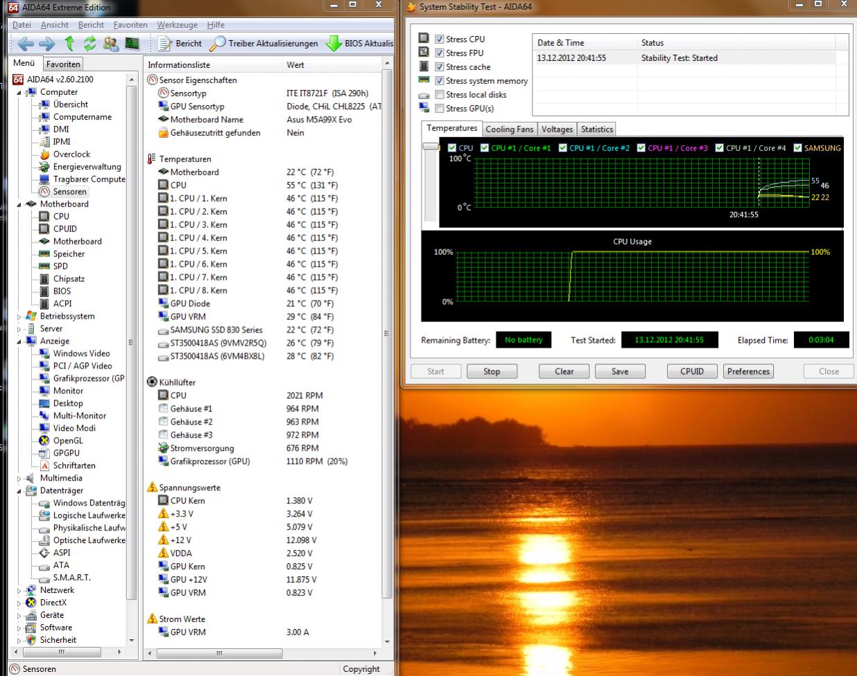 Wenn AIDA Systemstabilitätstest laufen lasse komme ich so auf 55 Grad, was jetzt meiner Meinung auch ned so wild ist weils ja "nur" ab und zu läuft. ( Hier sind´s ca. 3 min da pendelt er sich auch ein MAX Temp ist glaub 57 Grad).