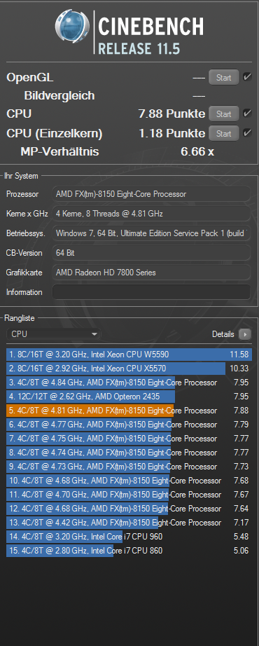 Cinebench 11.5 = 7.66 Pkt ( 4C/8T )