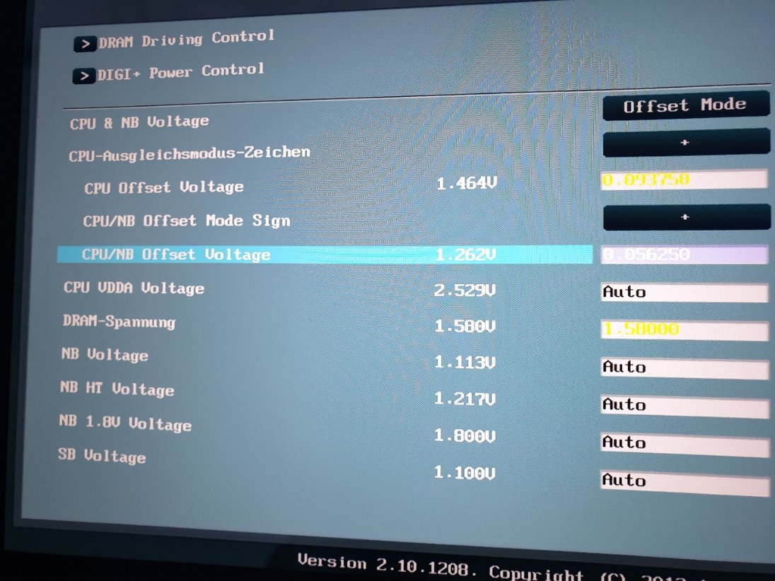 Habe bisher im Bios die Spannungen auf "Manuell" eingestellt, möchte jetzt aber unter der Offset Einstellung die Spannungen setzen.