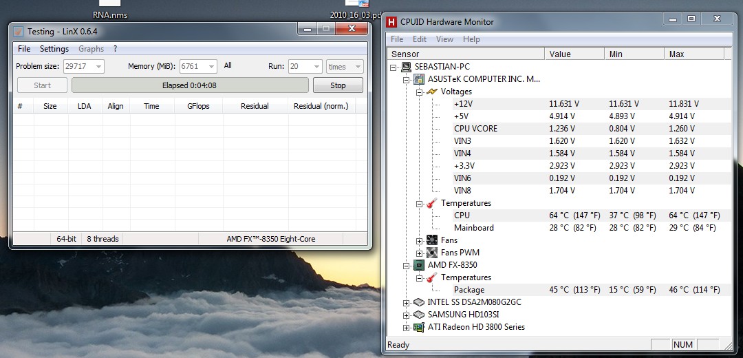 Core/CPU = 45°C/64°C