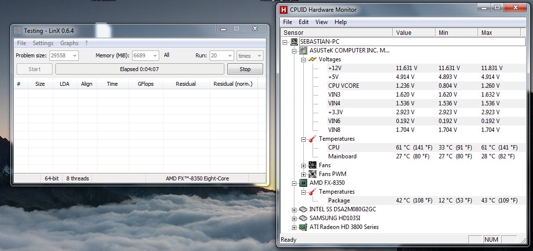 Core/CPU = 42°C/61°C