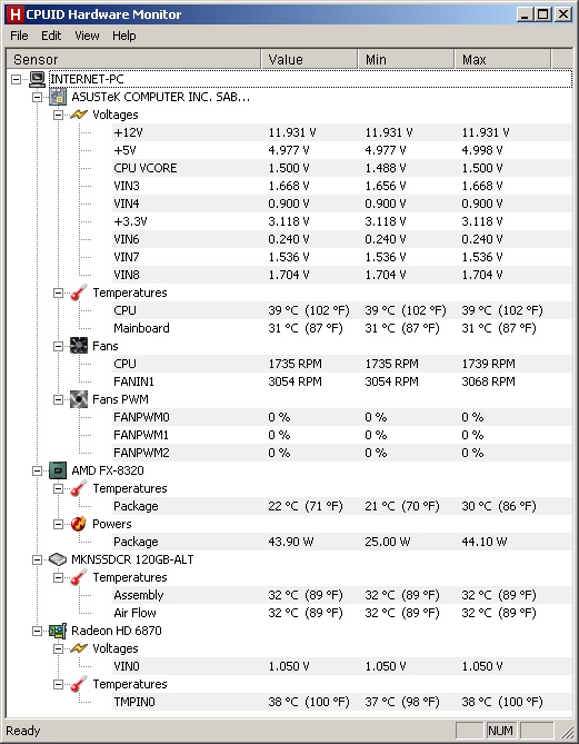 Ach ja, der RAM ist von 1600MHz (800MHz CL:8-8-8-24) auf 2400MHz (1200MHz CL:10-12-11) übertaktet.