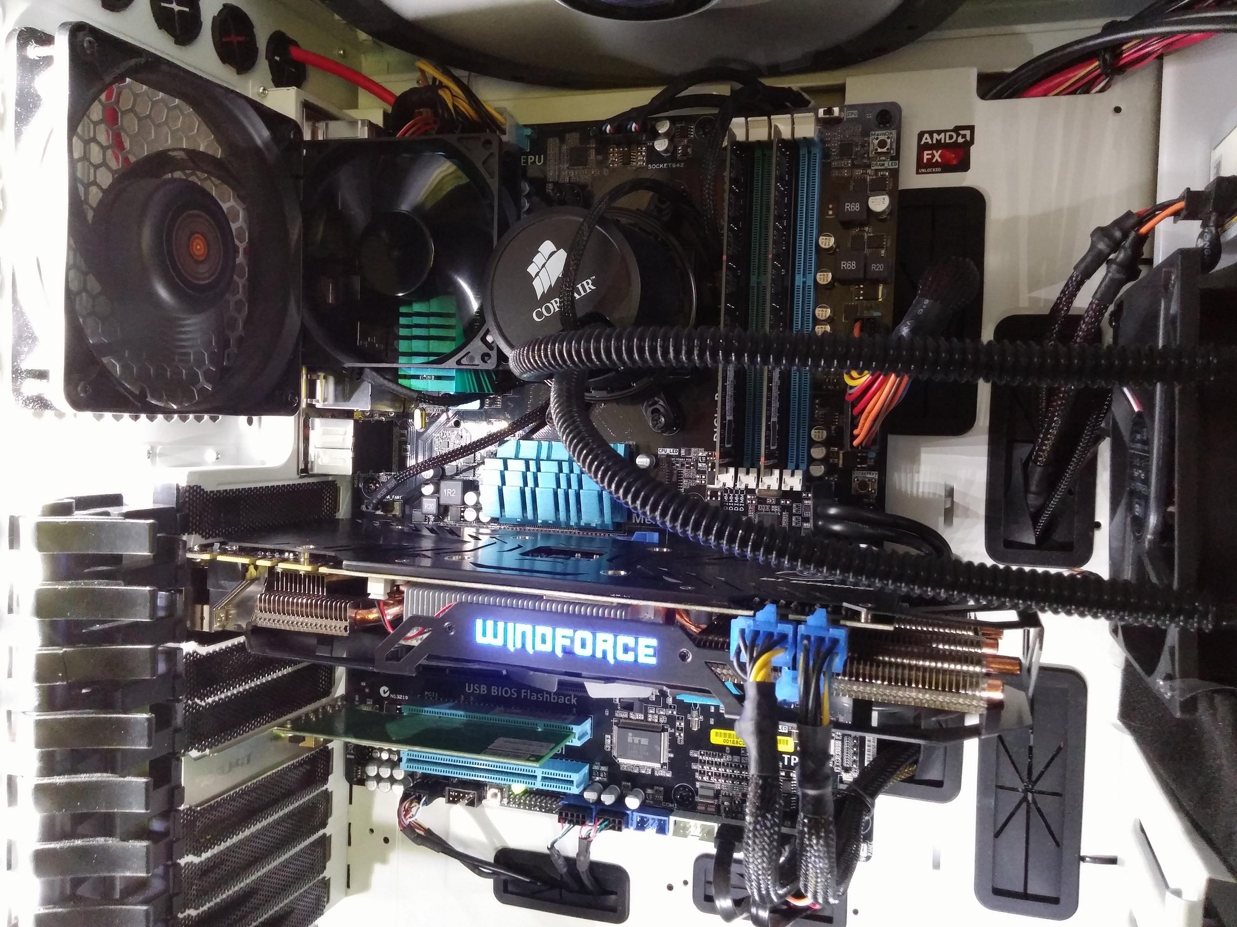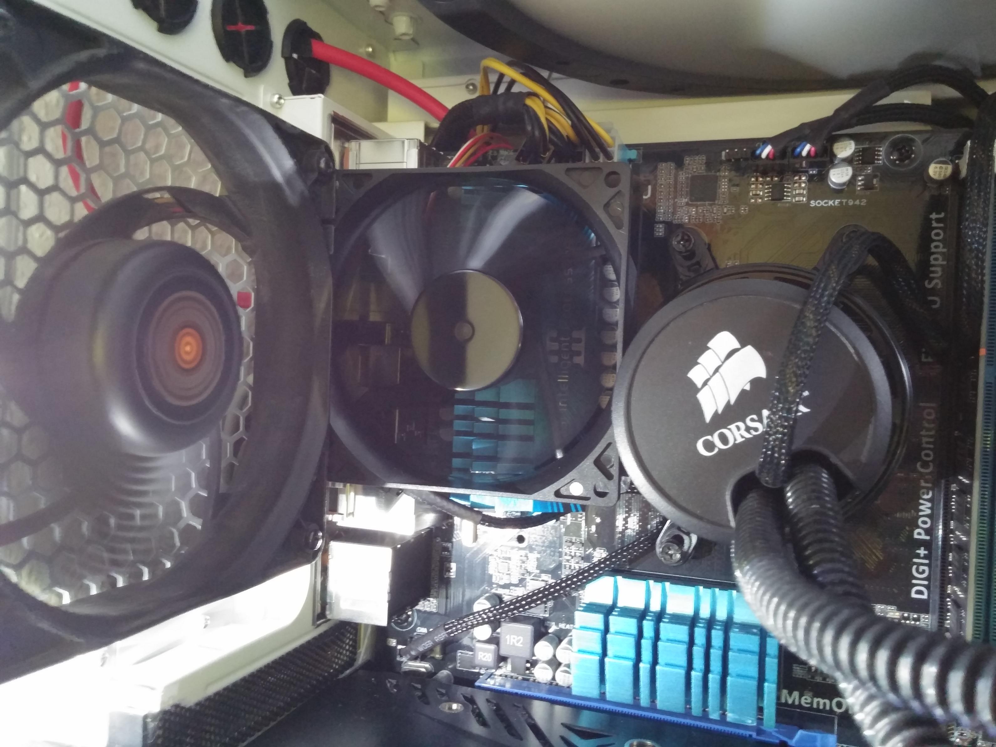 Der Noiseblockerlüfter ist jetzt da und über den VRMs montiert. Im Spiel ist der Kühlkörper jetzt statt 65,5 Grad nur noch 46-47 Grad warm.