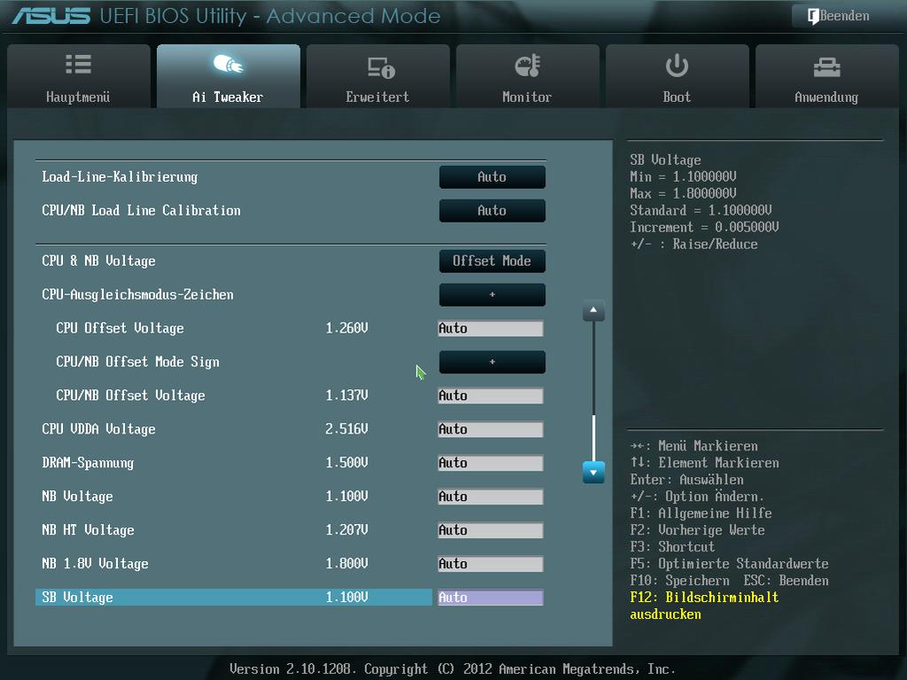 CPU & NB Voltage kannst du von offset auf manuel umstellen und die CPU Spannung dann einstellen oder per ebend offset die CPU Spannung anpassen, steht alles im Handbuch.