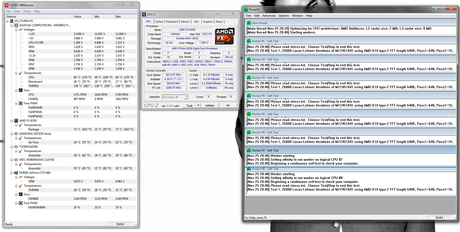 Wenn ich nun Prime starte zeigt mir HW Monitor schon nach ner halben Minute Temperaturen jenseits der 70 Grad an.