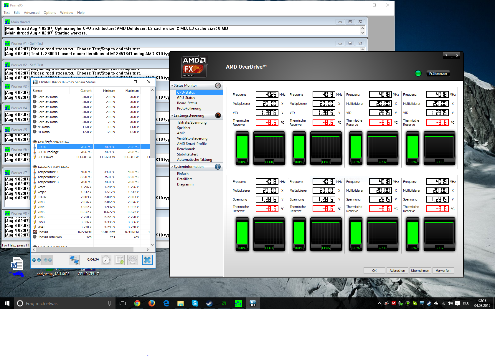 Im Juni hatte ich dann genug und habe mir als CPU-Lüfter dann einen Alpenföhn Brocken Eco (bei Alternate) gekauft. Das Piepen war dann auch erstmal, bis vor kurzem weg. Als aber beim Zocken wieder mal der Piepser zu hören war, habe ich mal mit AMD Overdrive und HWiNFO64 beim Spielen die Temperaturen ausgelesen, die dann gerne mal in die 70°C-Bereiche gestiegen sind.