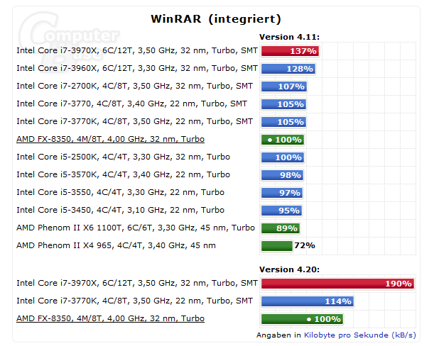 Das ist so pauschal schlicht falsch, der 3350P etwa kostet 150 Euro und ist im Mittel dem FX-8350 überlegen. Es gibt von AMD wie von Intel CPUs von 30 bis 180 Euro, darüber hinaus nur noch von Intel (außer Server sprich Opteron).tco95ttocs schrieb:dem schließ ich mich an, die meisten vergessen halt einfach, dass ein Intel meist einen höhren Anschaffungswert hat als ein AMD.