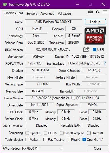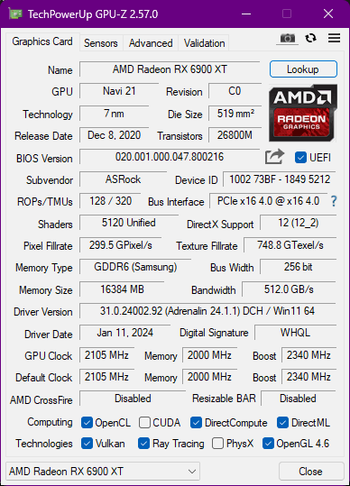 - Grafikkarte: AMD Readon RX 6900 XT Phantom Gaming 16GB