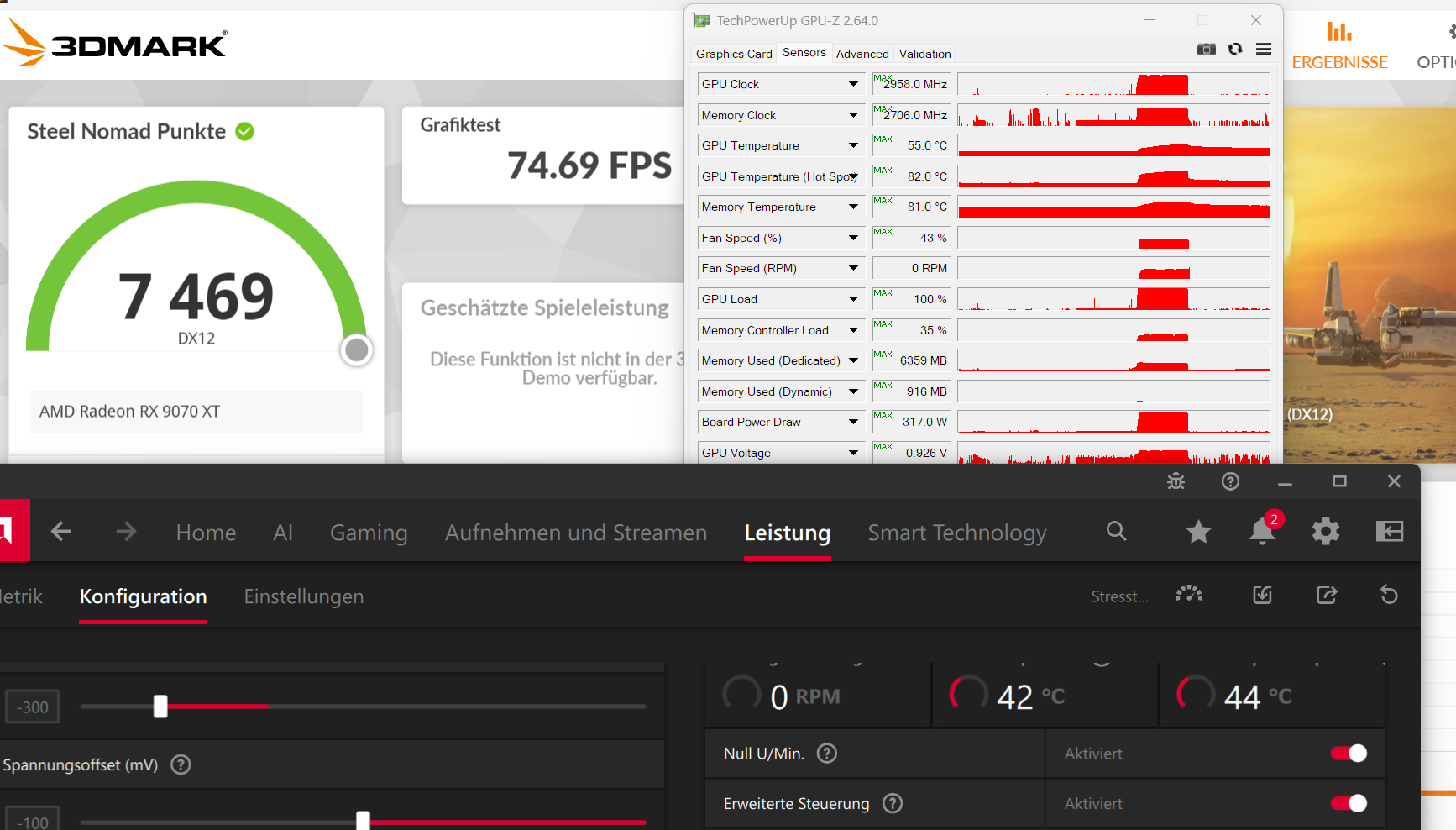 Interessanter weise komm ich auch nur durch undervoltung und der einstellung -100mv -300 auf 74 fps wenn ich +10% leistung oder +100 offset takt reinballer wo die karte mehr zieht sinkt auch der score in 3dmark obwohl mehr frisst auf 70 und paar zerquetschte
