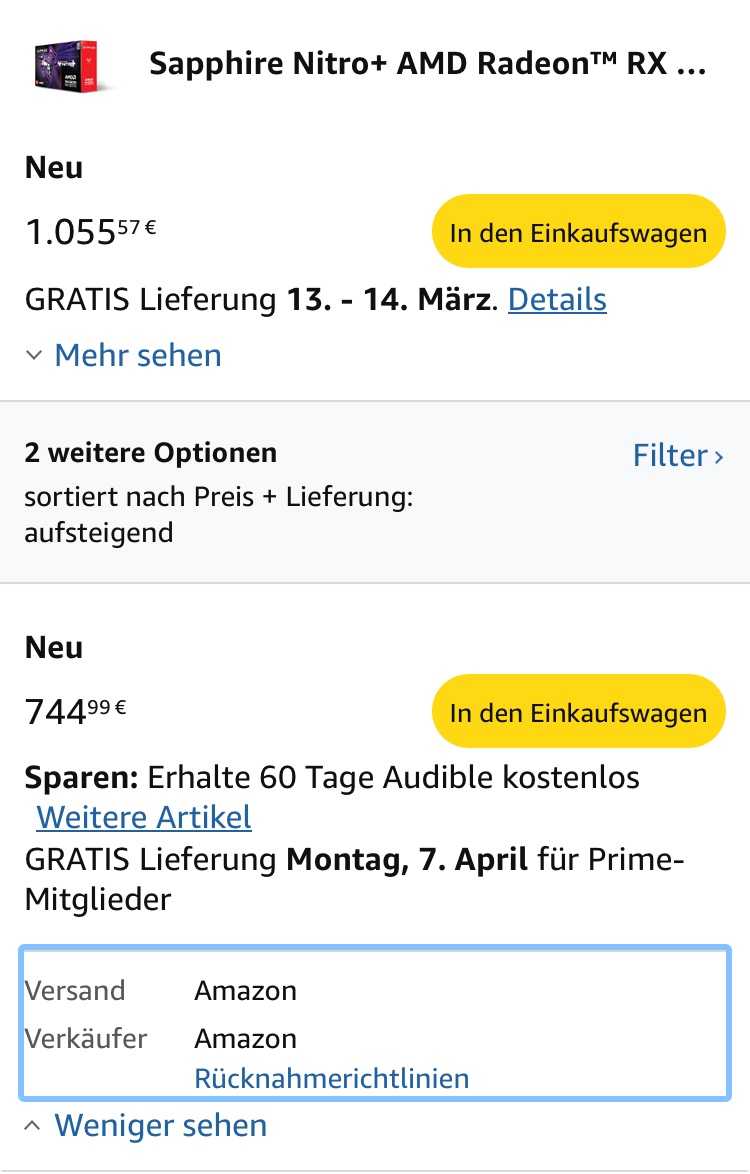 Nun haben die Händler scheinbar die ~1000€ für XT und non-XT etabliert, sodass die GPU völlig uninteressant geworden sind.