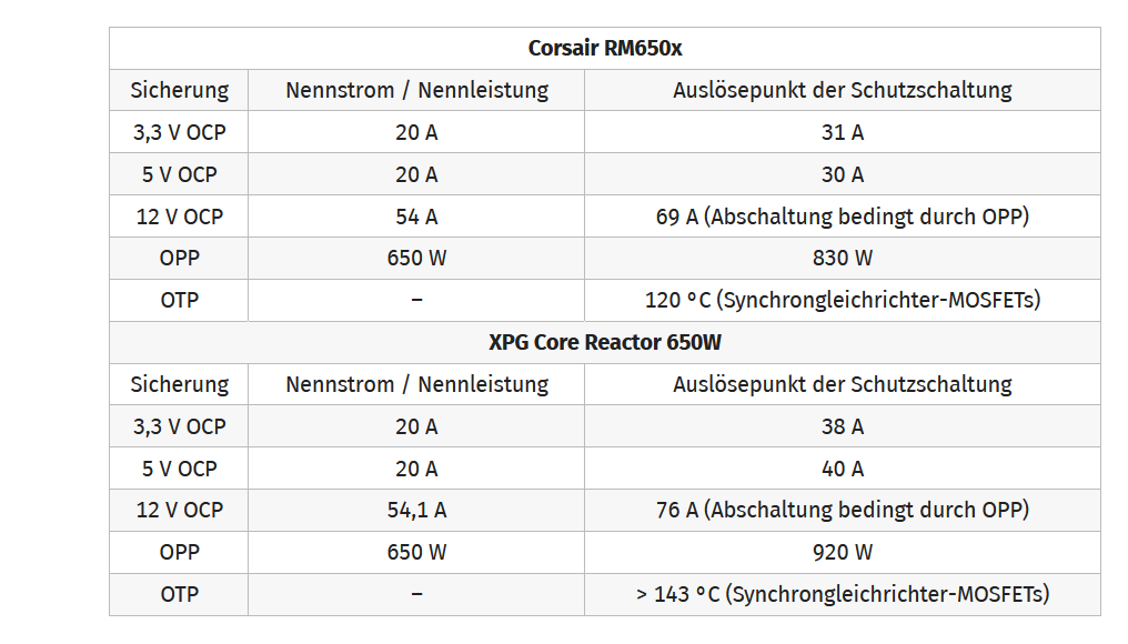 Siehe hier mal ein SP11 750W gegen ein 650W Enermax was die Absicherung der Grakarails angeht. Quelle