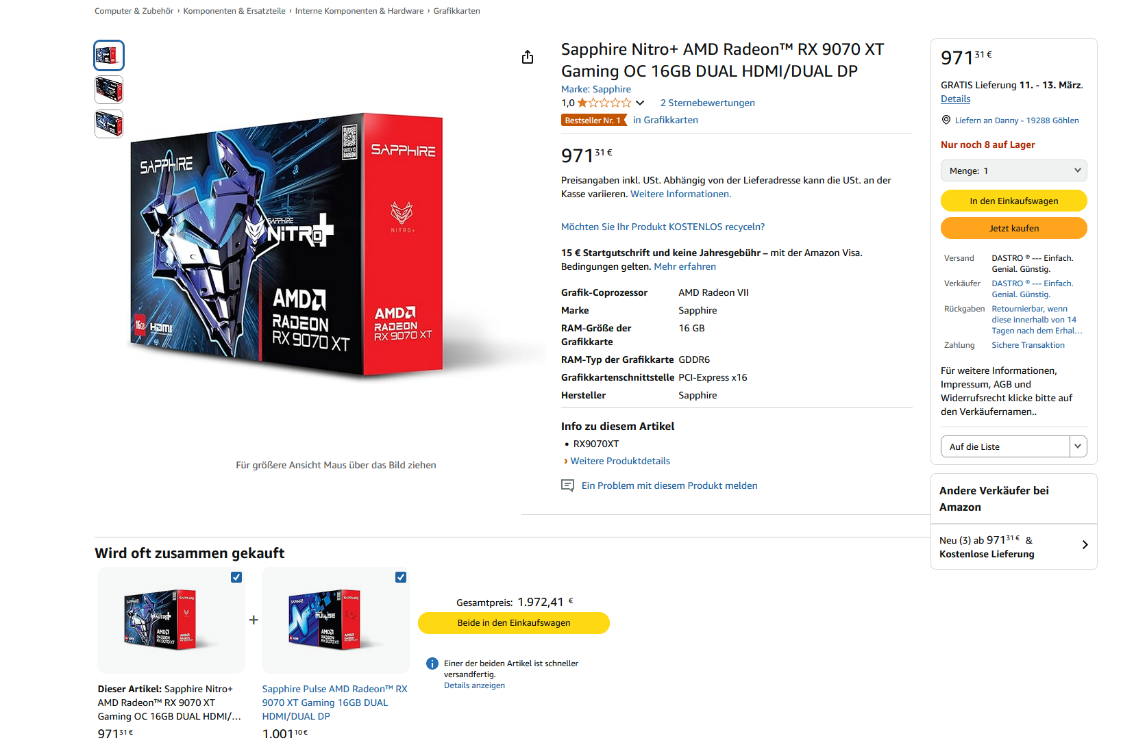 Ich muss sagen, dass ich schon mal positiv überrascht bin und es ganz gut finde, dass Caseking seine 9070er Karten zu Scalperpreisen schon mal nicht aus den Händen gerissen bekommt.