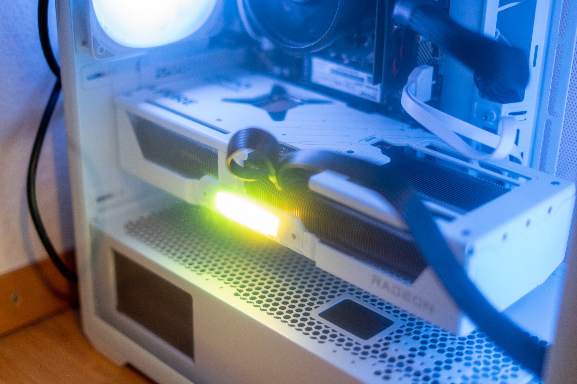 Meine SAPPHIRE Radeon RX 9070 Pure OC von Alternate ist heute auch angekommen, ziemlich ausladendes Kärtchen für das kleine PCB (und neben der geradezu zierlichen Arc B580 LE). Die HD-Audio- und Front Panel-Stecker meines kleinen ASRock-Bastel-Systems haben jetzt nen ziemlich engen Biegeradius 😅, für 3-Slot-Karten ist das Board bzw. die Steckerpositionierung leider nicht optimal ausgelegt.