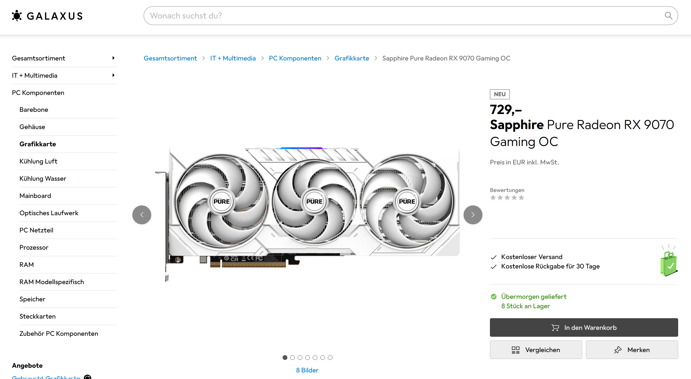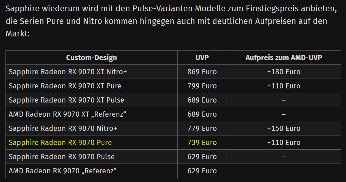 - Sapphire Pure Radeon RX 9070 Gaming OC* (729,00 €, Galaxus)