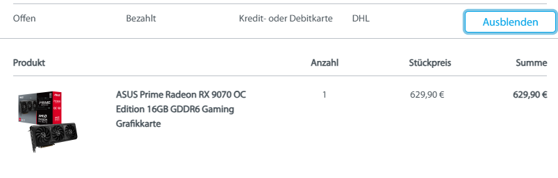 - AsRock "RX 9070 16GB Radeon Steel Legend GDDR6 3Fan"* (953,36 €, Galaxus)