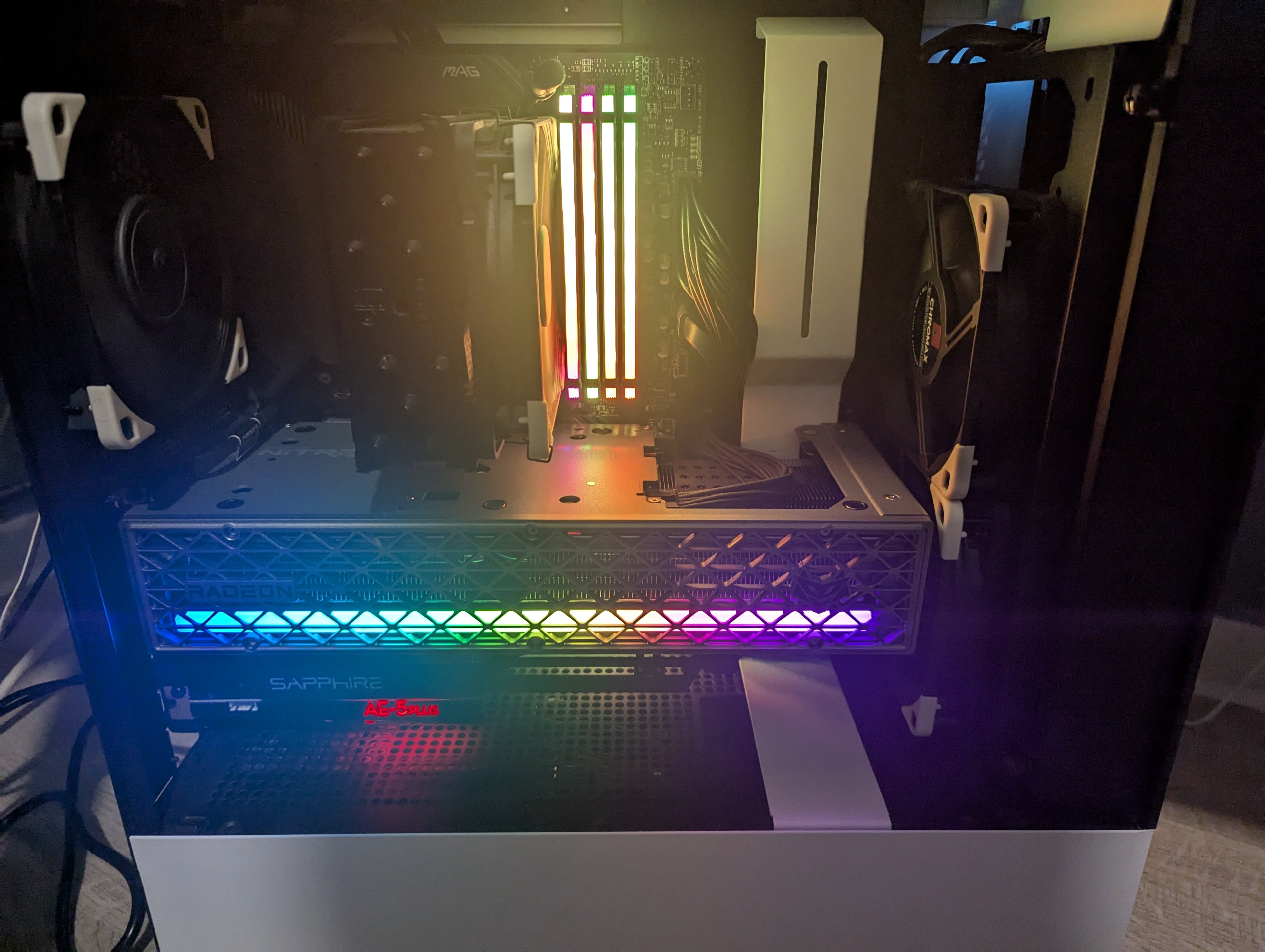 Ansonsten kann ich nichts negatives zu der Sapphire Pulse mit Blick auf Ergonomie (Lautheit, Temps) sagen. Selbst unter Last (Benchmark) sind die Lüftergeräusche überraschend niedrig bei kurzzeitigen 99-100% GPU-Auslastung. Die 2x 100mm Lüfter passen für mich hier perfekt.