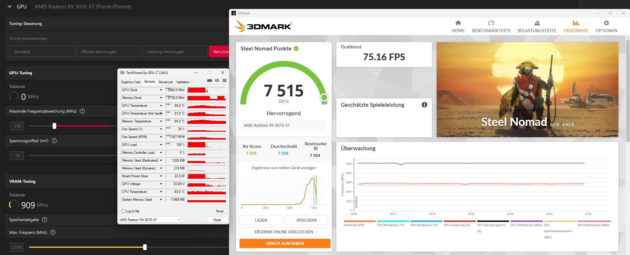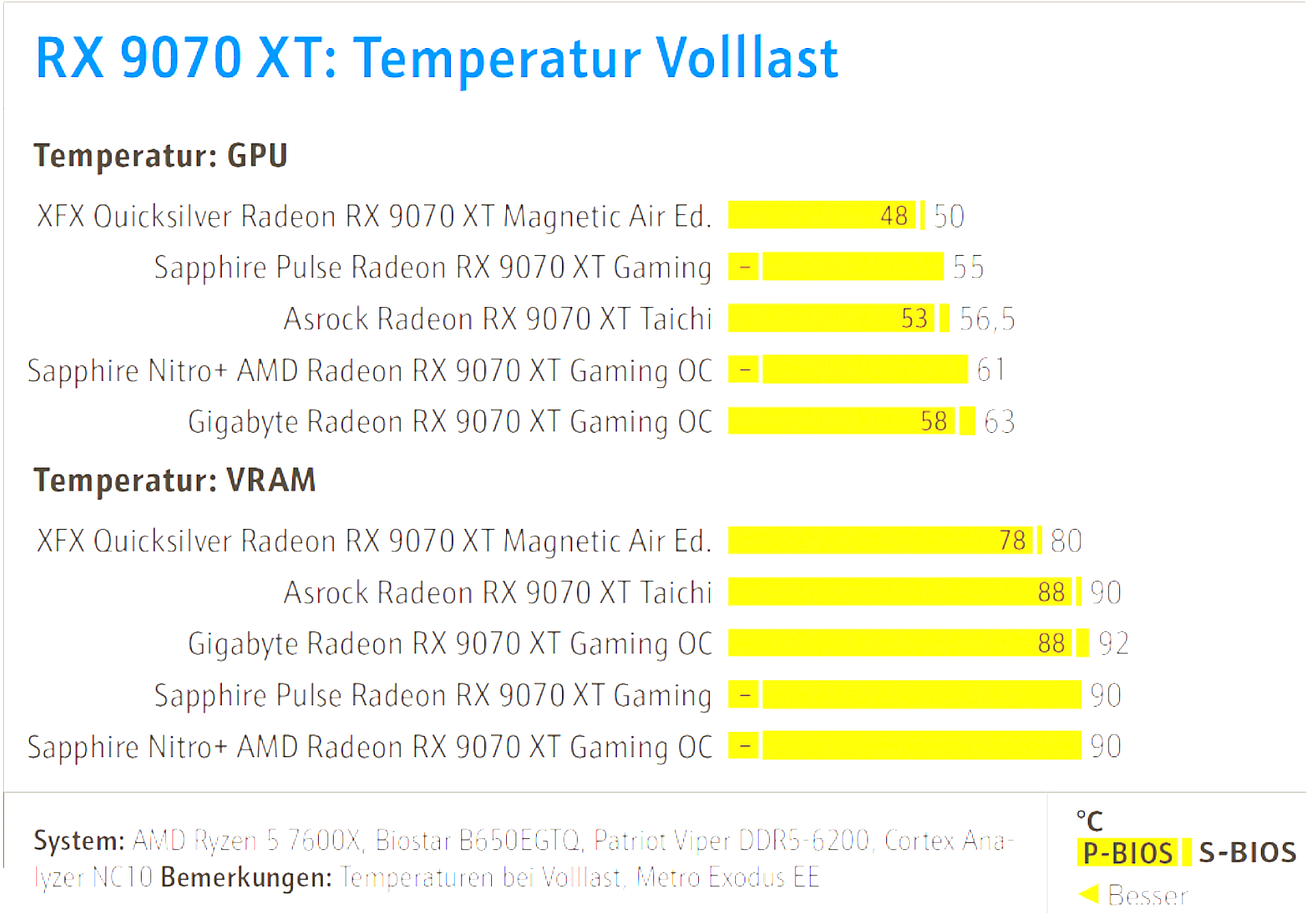Meine Pulse XT sieht mit +10% PT keine 85° bei ~1300 RPM und rund 80° mit -15% PT bei ~1160RPM (in nem ITX Gehäuse mit 15 Litern). Und da ist ja noch sehr viel Spielraum bei der Lüftergeschwindigkeit.
