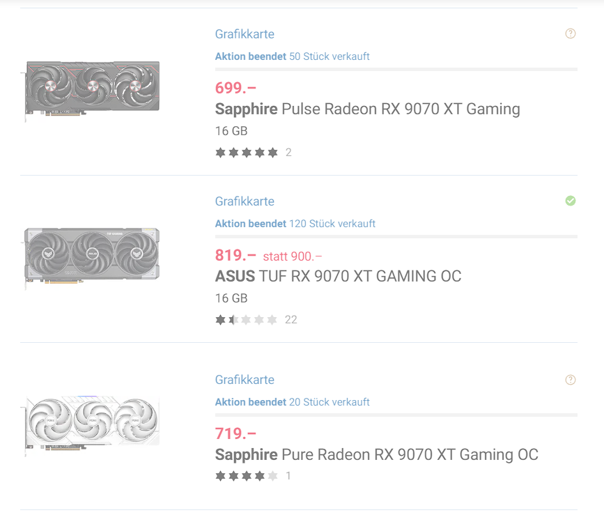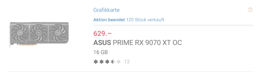 Verfügbarkeit und Preise 9xxx und 5xxx ist die reinste Katastrophe seit längerem in der CH. Ich sag nur 900chf für eine 9070xt Tuf, deshalb kann man die auch seit Tagen durchgehend kaufen beim grössten Händler der CH. Als Ch´ler würde ich mit dem starken Franken eher den Packetdienst bemühen momentan,was auch Viele machen.