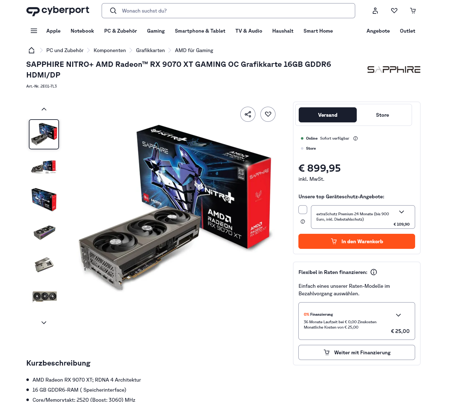 - GIGABYTE Radeon RX 9070 XT Gaming OC* (799,00 €, Alternate)