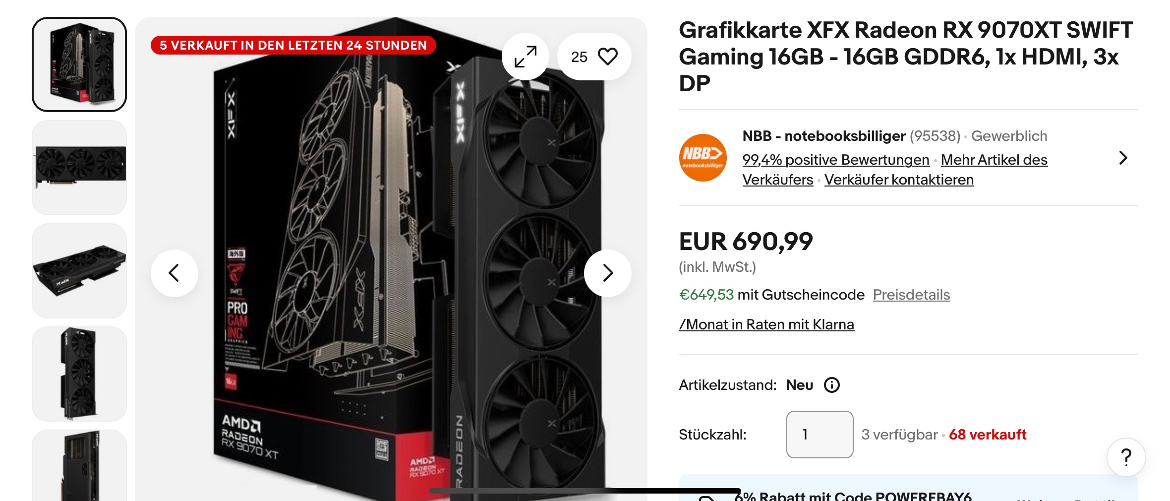 Gibt es denn nen Test oder Erfahrungswerte zur Acer 9070 Nitro OC? Für 499 Franken könnte ich tatsächlich schwach werden und wieder ins rote Lager wechseln…