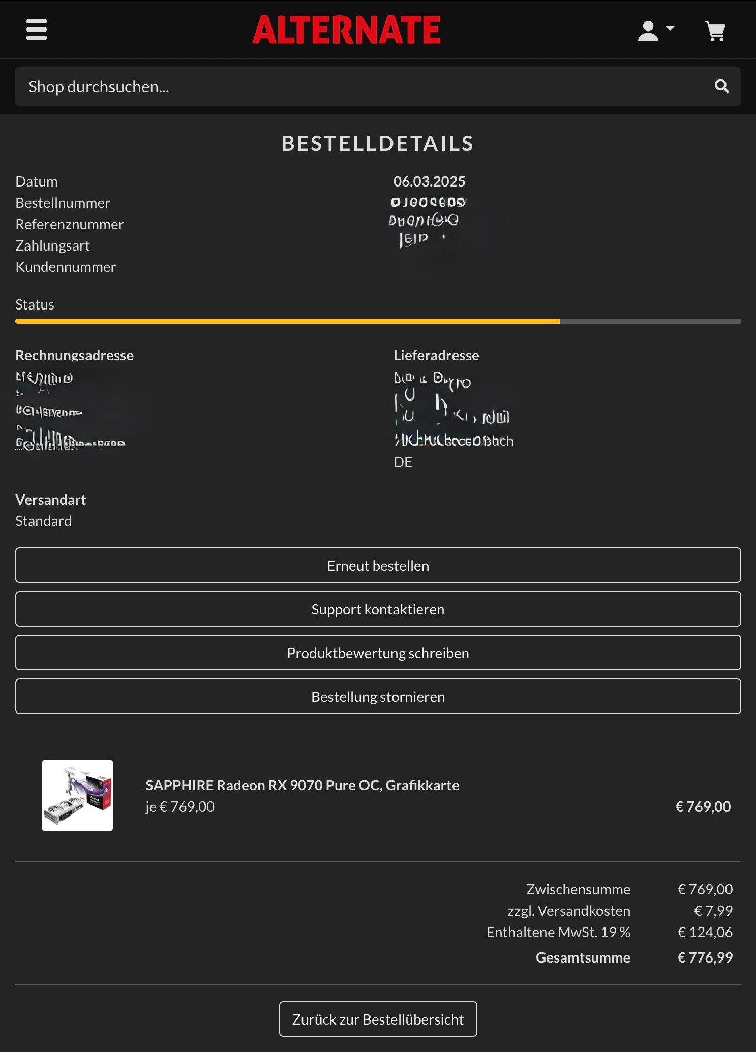 - ASRock Radeon RX 9070 XT Steel Legend 16GB - 756,99€