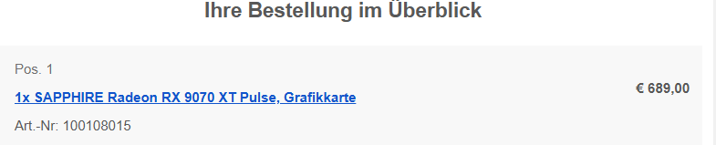 Um 15:01 war schon nix mehr da. Ich hoffe dass die Bestellung dieses mal durch geht und nicht gecancelt wird wie bei der 5070 Ti bei Caseking.