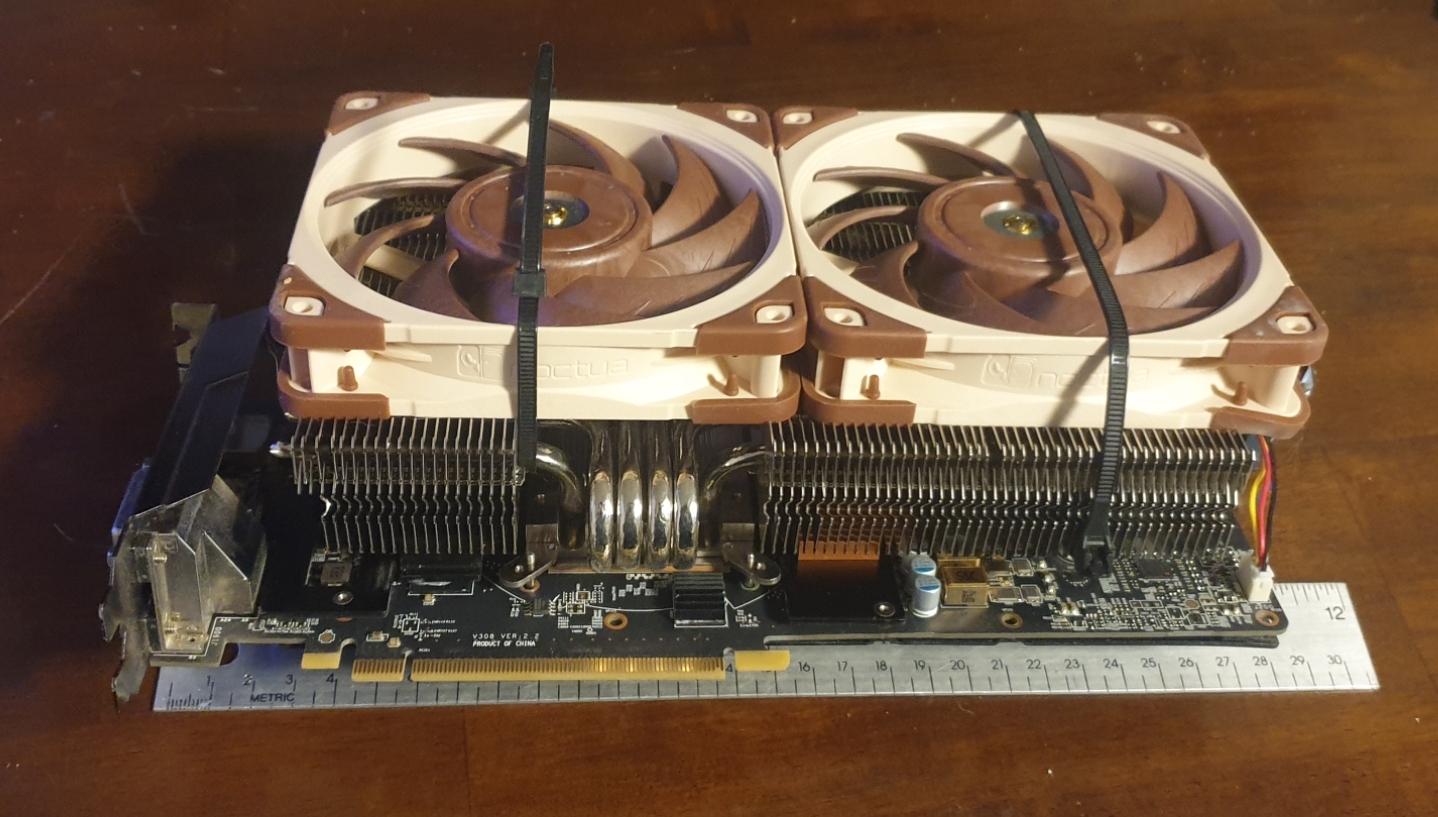 Mehr davon bitte. Das aktuelle 0815 GPU-Kühlungskonzept sieht ja nur vor, dass Luft im Gehäuse herumgewirbelt wird, anstatt die heiße Luft direkt aus dem Case zu befördern...