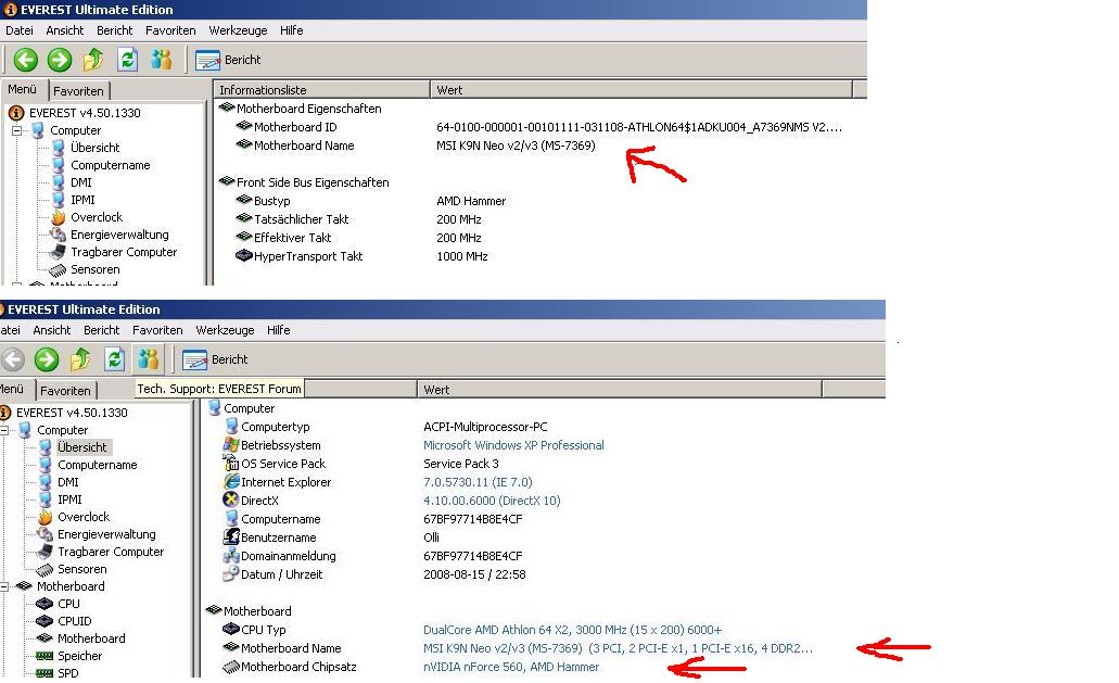 Schau noch mal in Everest nach. Müste an der selben stelle wie bei mir stehen nur ebend ein anderes board mit Chipsatz.