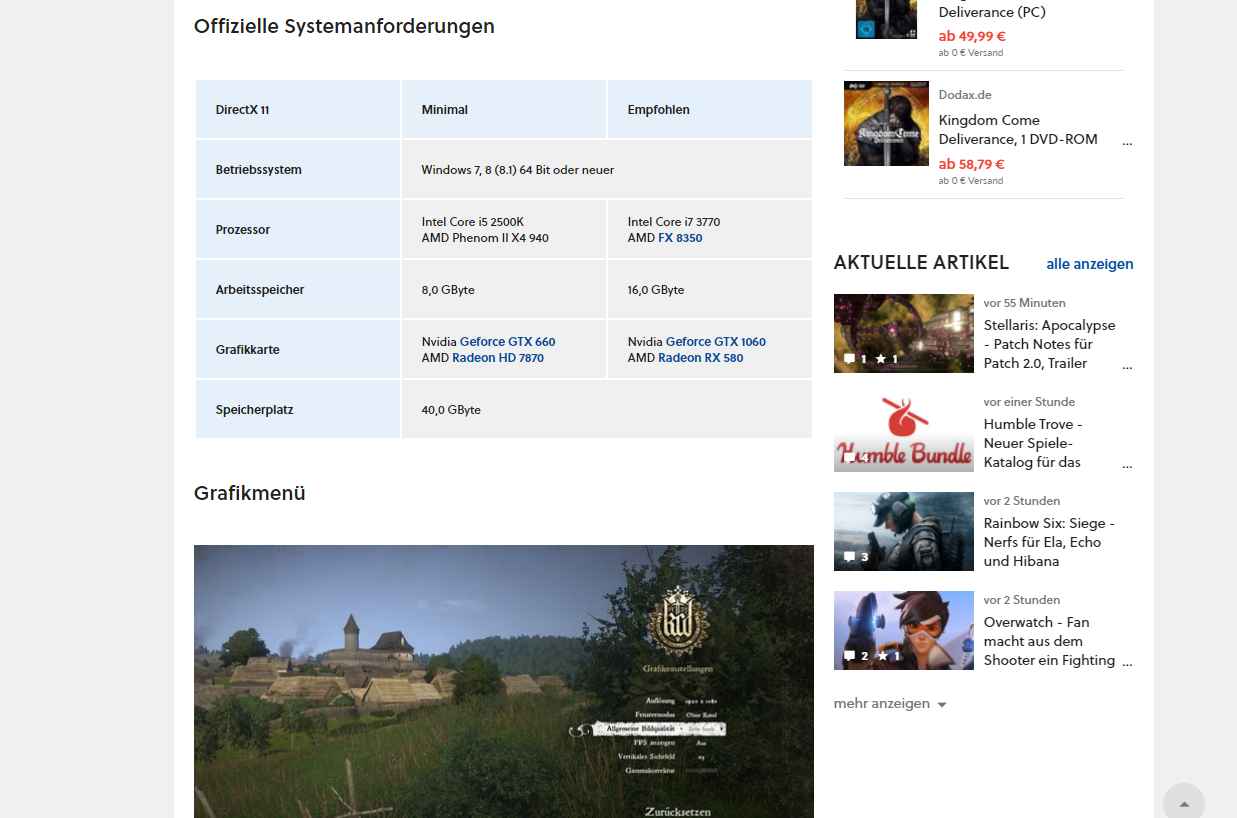 Zu Kingdom Come Deliverance : Mit den aktuellen Treibern erreiche ich nun sogar Durchschnittlich 50FPS auf Mittel, aber Objektdetails und Vegetation und Schatten auf niedrig. Objekt und Vegetation ist dabei nur die Sichtweite also stört mich das nicht so^^