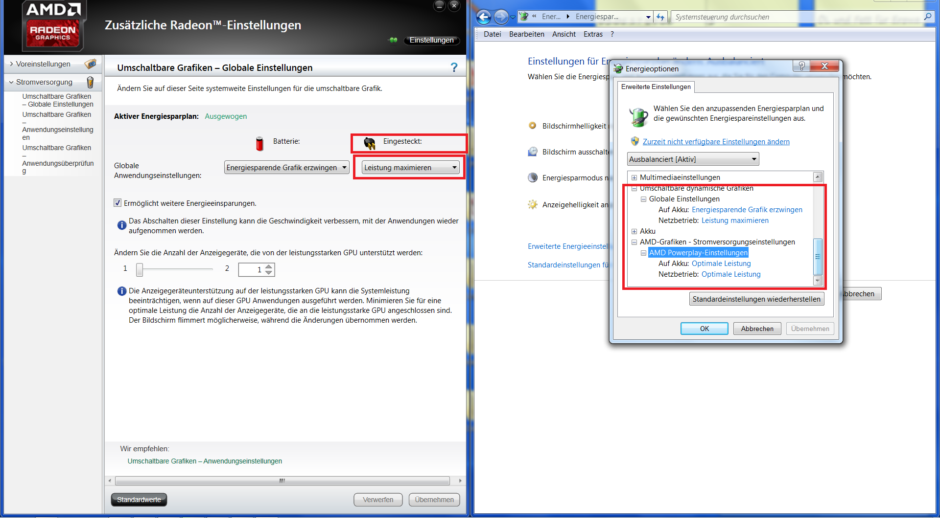 Hallo ich habe einen HP g6-1281 eg. Ich habe eine Intere Grafikeinheit (Intel Graphics HD) und eine (Radeon HD 6470M) wird auch im Geräte Manager angezeigt. Das Problem ist wenn ich z.B ein Spiel Minecraft spiele startet er immer es mit der Internen Grafik, obwohl ich bei Umschaltbarer Grafik Minecraft als Hochleistung ausgewählt habe. Ich habe die Chipsatztreiber und die Grafiktreiber vom HP Herstellerseite hochgeladen. Woran kann es liegen.