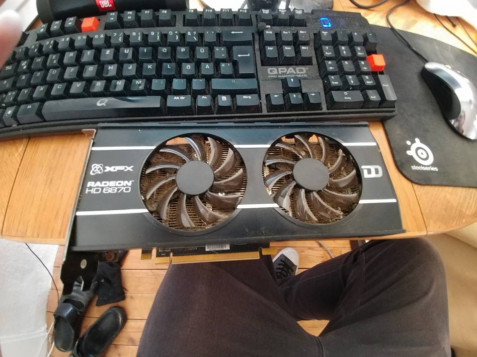 Die 6870 hat sich aber völlig "normal" benommen. Ist hochgefahren wie üblich, hat ihren Fanspeed nach Selftest entsprechend angepasst - nur der Bildschirm blieb halt schwarz. Alle Anschlüsse getestet.
