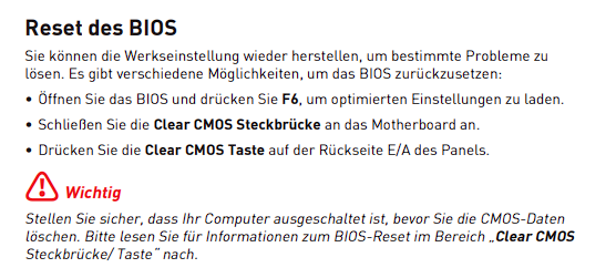 so möchte jetzt das MB resetten, auf dem hinten I/O Panel gibt es nur den "Flash Bios Button". Wie kann ich das Board noch resetten?