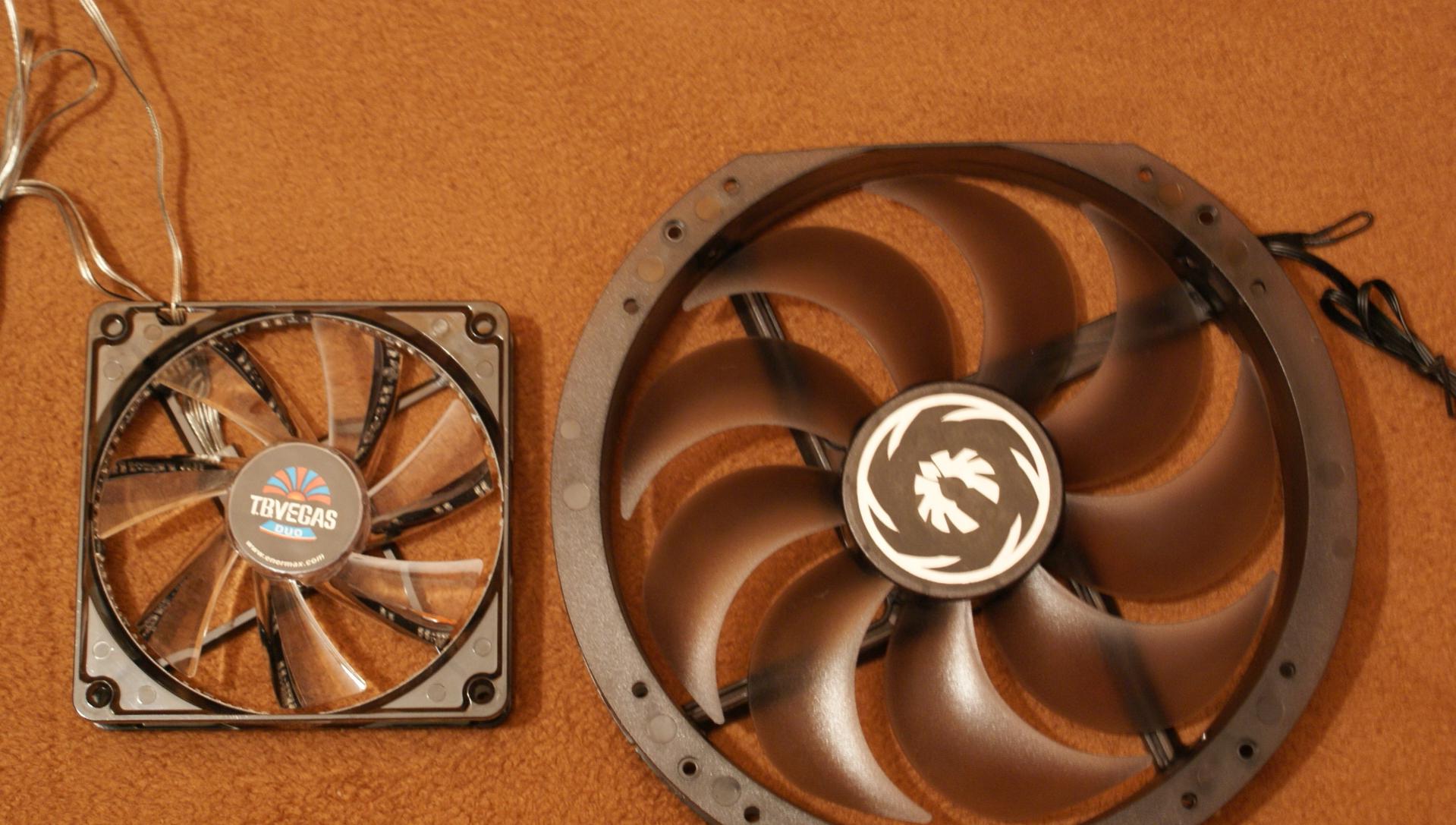 Pic1: Größenvergleich zwischen einem 120er Lüfter und den 230mm