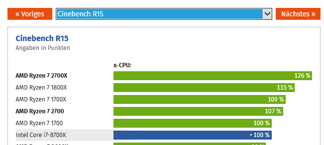 Du könntest beispielweise auch den 2700 nehmen, der verbraucht weniger und leistet mehr! Davon ausgehend könnte ich dann beim 8700k auch von einem exorbitant hohen Verbrauch sprechen. Tut er aber nicht, nur bei AMD ist es ok? Alternativ könntest du dir auch die Primelast anschauen...