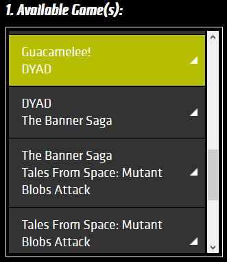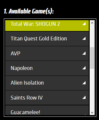 ich hab mir eine R9 290 gegönnt und auch einen Code bekommen für die Never Settle Aktion. Jetzt wollte ich den einlösen, aber in der Liste möglicher Spiele stehen nur: