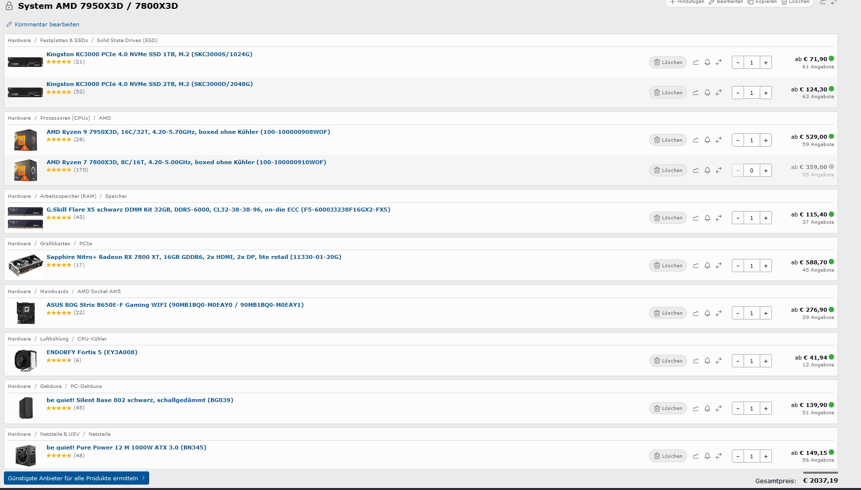 7950X3D: ~2037 - man kann 45 euro abziehen, wegen ASUS Cashback ~1992
