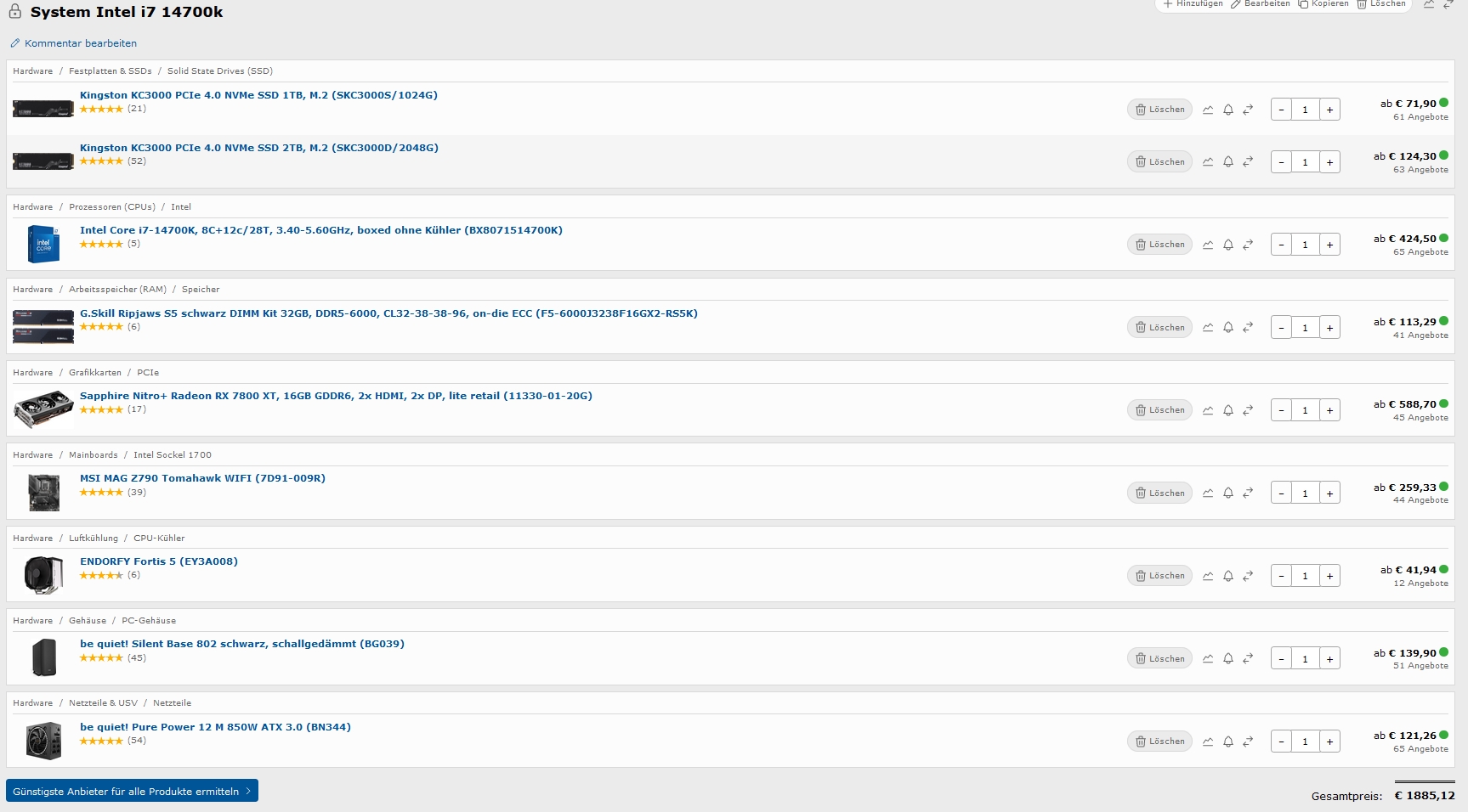 Also der 14700k kostet dann ca. Stand ´heute morgen ~1885