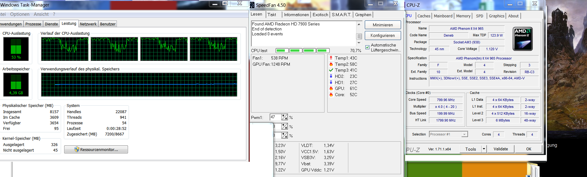 Anbei ein zusammengebautes Bild, was die CPU- und Grafikkartenauslastung anzeigt.