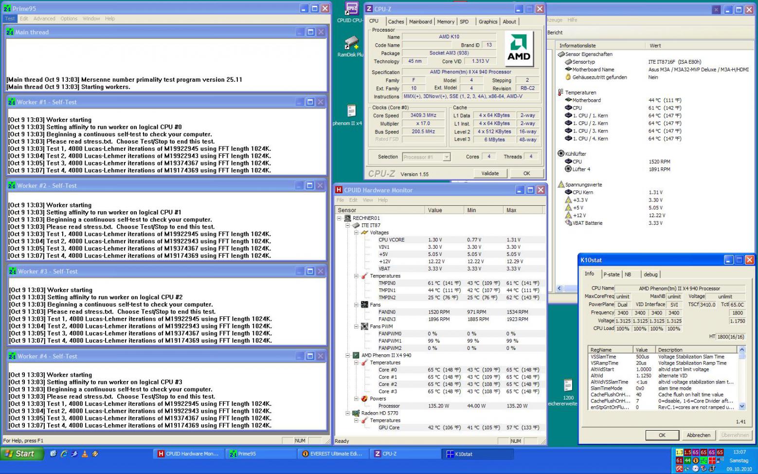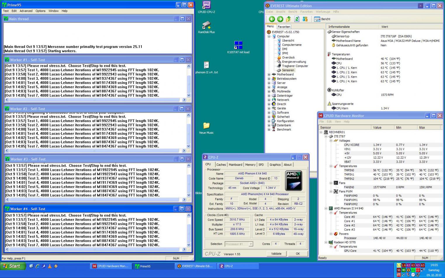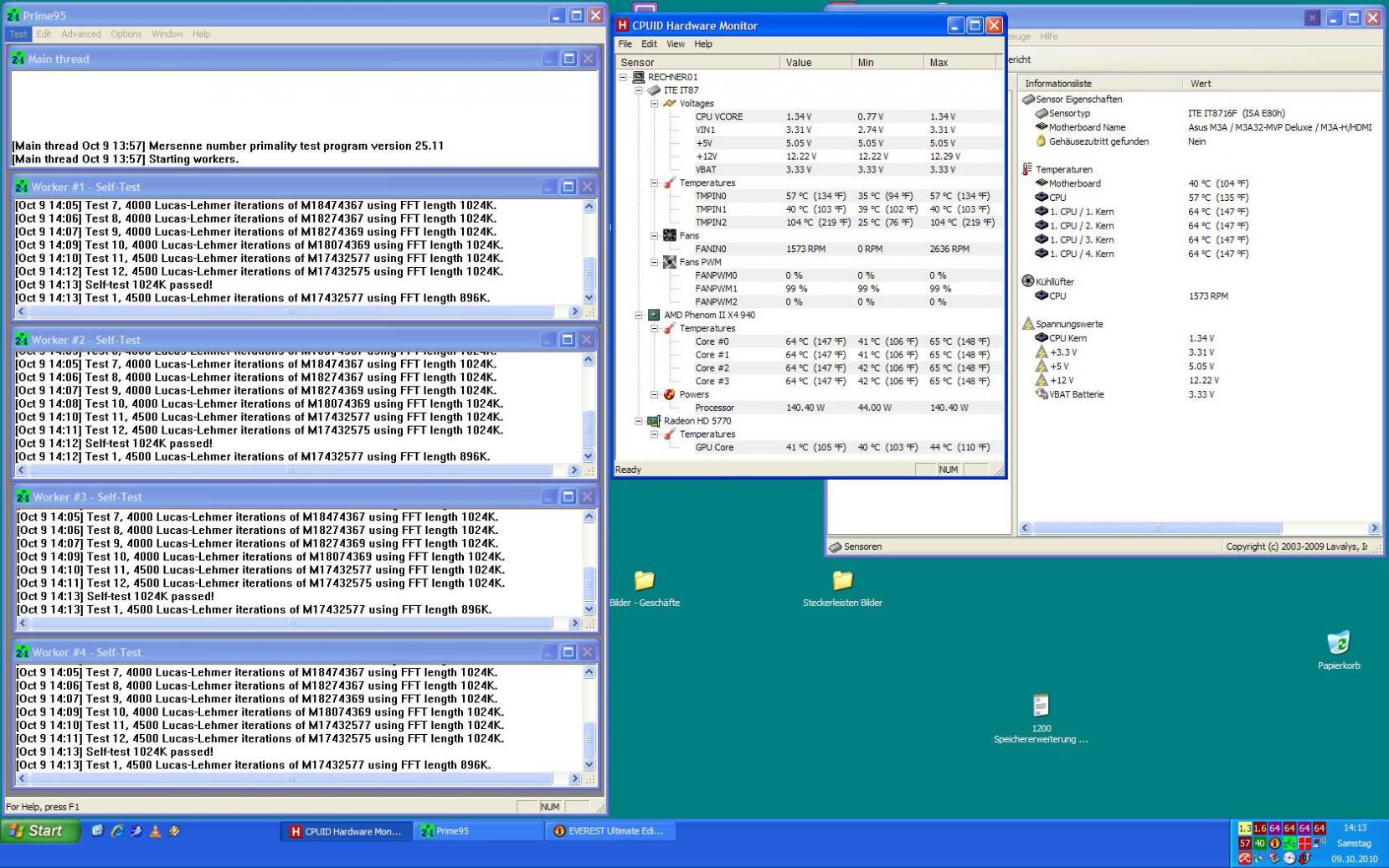 Mainborad ist das Asus M3A32 MVP Deluxe und auf der CPU sitzt ein EKL Brocken mit Alpenföhn 120er Lüfter.
