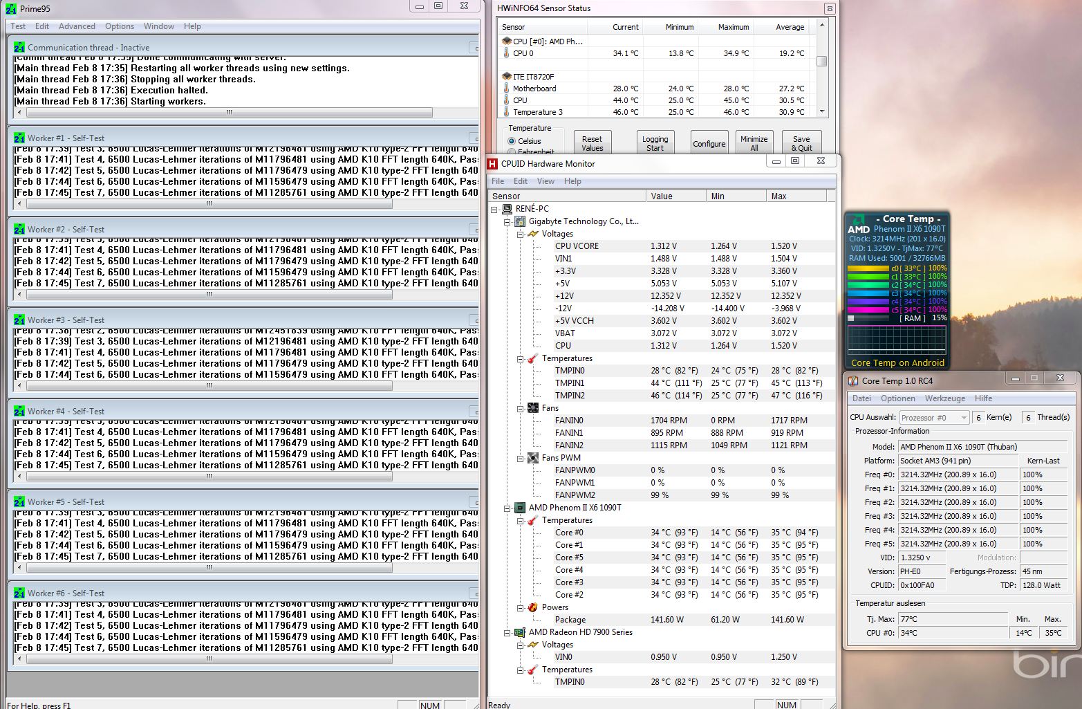 Bild 1: 15min. Prime95 TortureTest, Raumtemp.: 22°C
