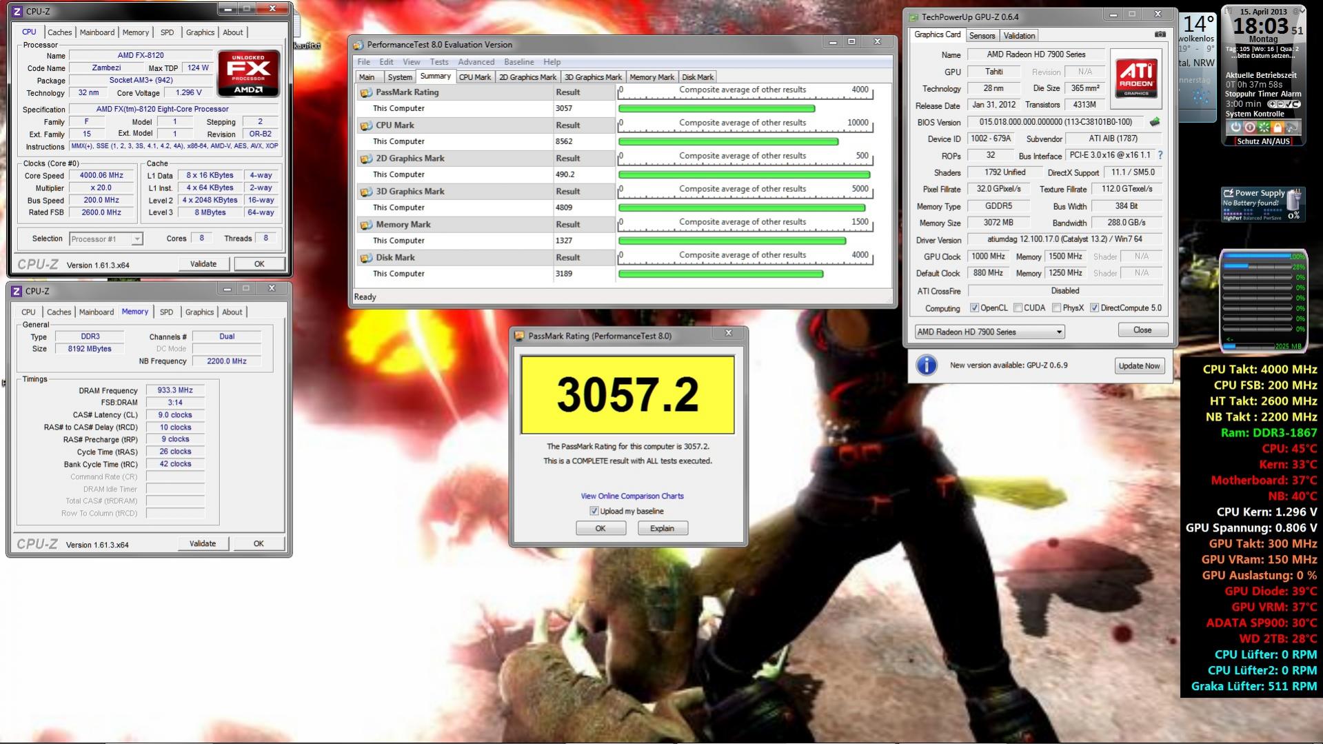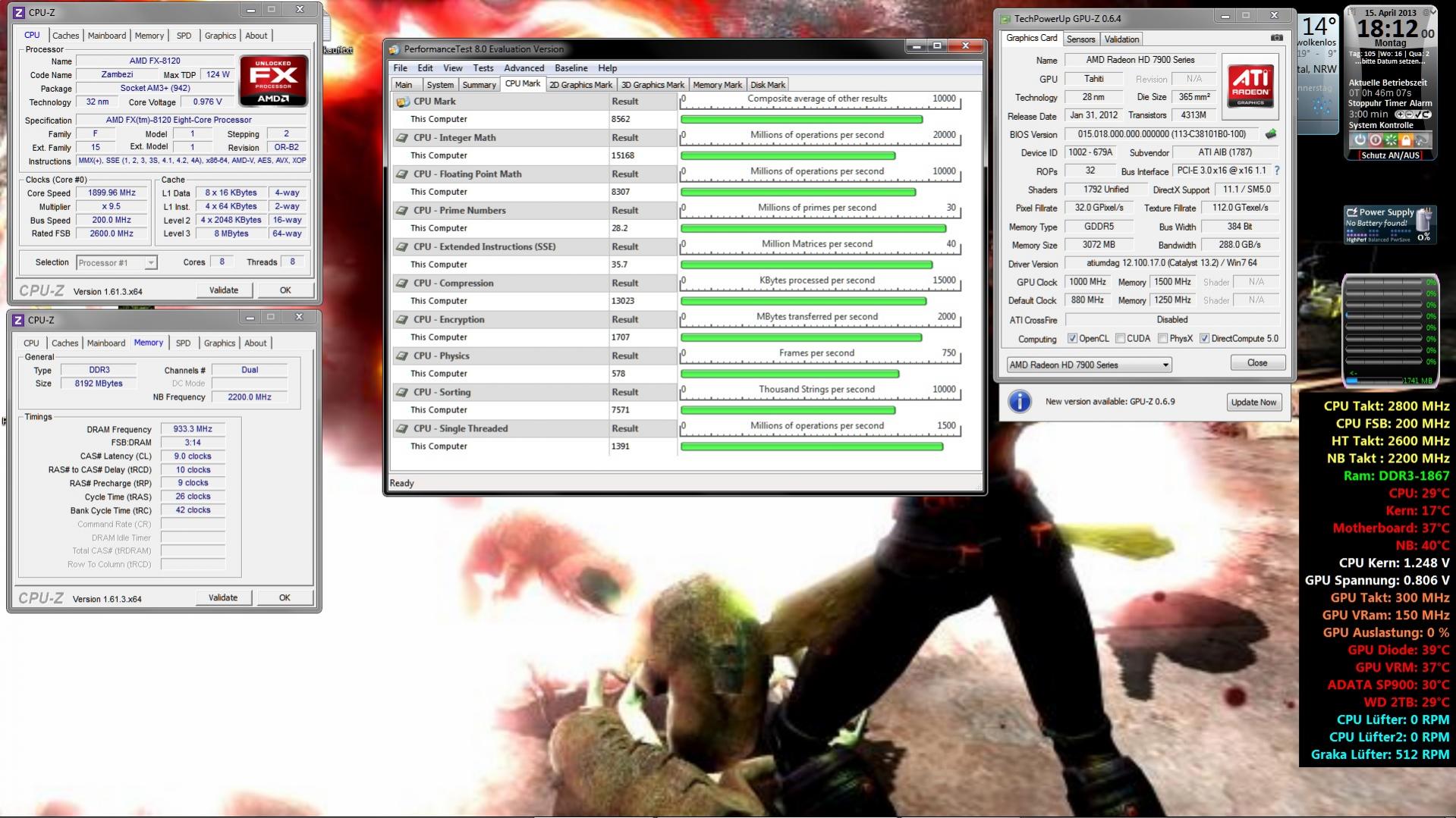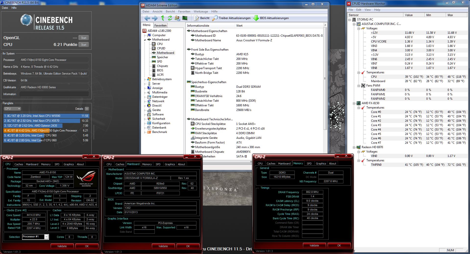 Casi hat den 8120 und ich den 8150 @4.2GHz wenn ich mich nicht irre oder? Also müsste der Score ja fast gleich sein.. Jedoch hab ich wie in meiner Sig (Update kam Gestern) zu sehen ist die NB und die HT übertaktet. Ich mach mal nen paar Benches jetzt