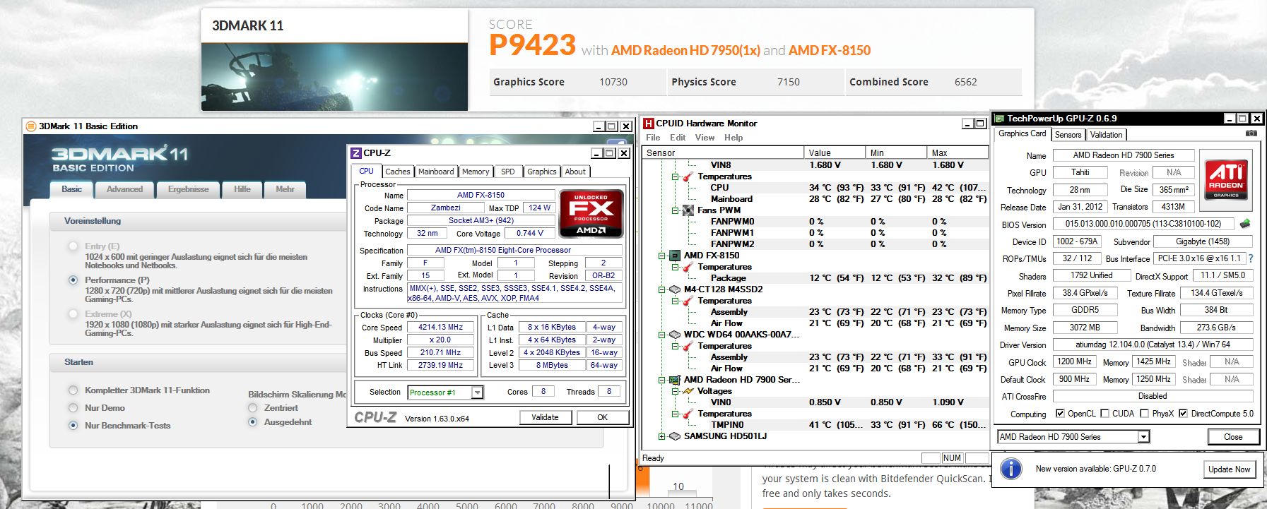4214 MHz (GPU 1200 MHz): 8509 Punkte (+14%)