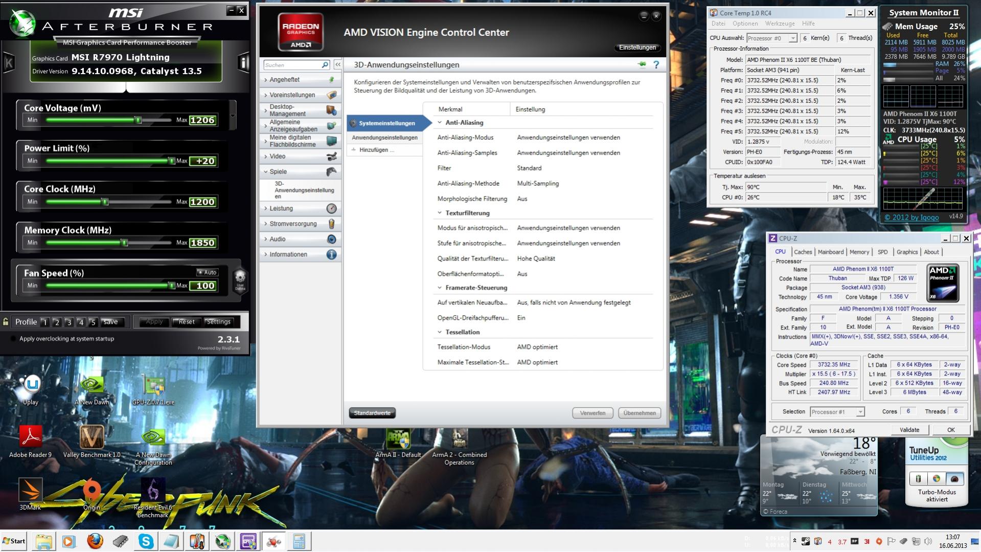 Um eine Limitierung durch die Grafikkarte auszuschließen werde ich die Grafikkarte auf 1200 MHz Core und 1850 MHz RAM Takten.