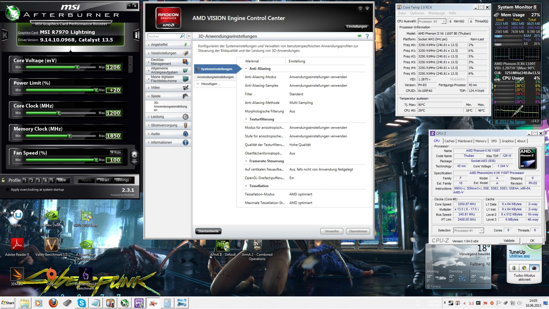 CPU: Phenom II X6 1100T@4,2 GHz (NB CPU@3,13 GHz;HT Link@2,4 GHz; Bus 240 MHz)