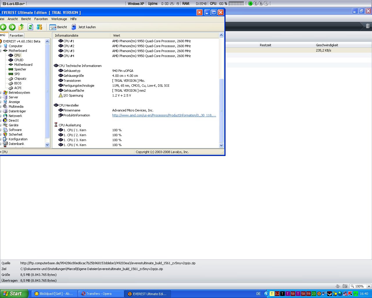 CUP 100%. Ich habe mir gedacht, das kann ja nicht sein. Der PC läuft einwandfrei.